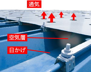 - シートと屋根の空気層が熱伝導を防ぐ